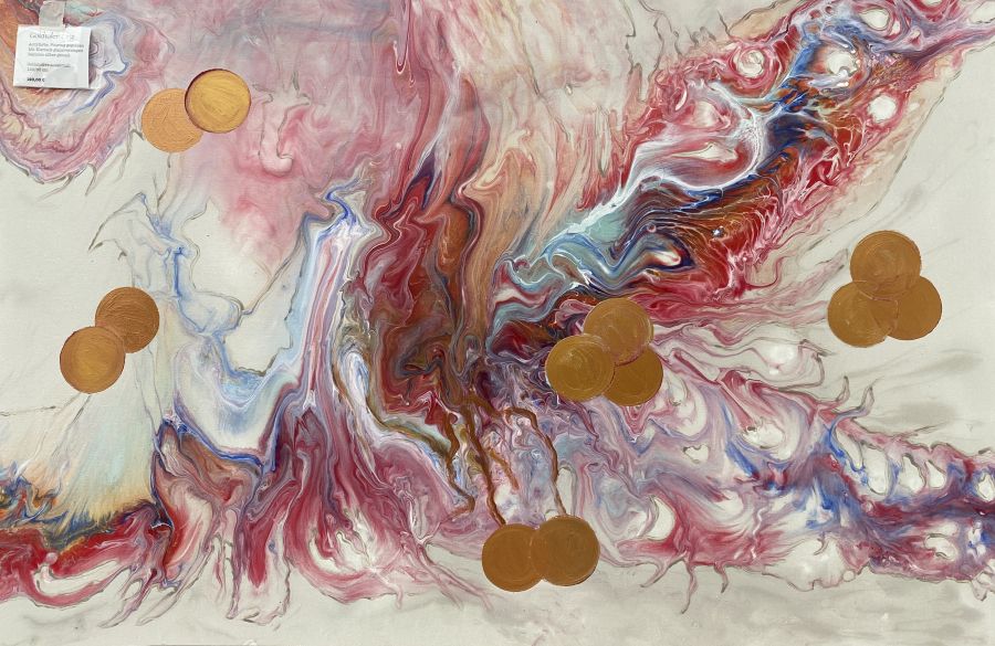 Während der Corona-Zeit hat die Zetelerin das Malen für sich entdeckt. Ganz besonders begeistert hat sie die Technik des acryl pouring. Die Farben werden gemischt auf die Leinwand gegossen und dann mit verschiedenen Utensilien, wie einem Pinsel oder Spachtel, bearbeitet. Bei dieser Technik weiß man am Anfang nie, wie das fertige Kunstwerk am Ende aussehen wird.