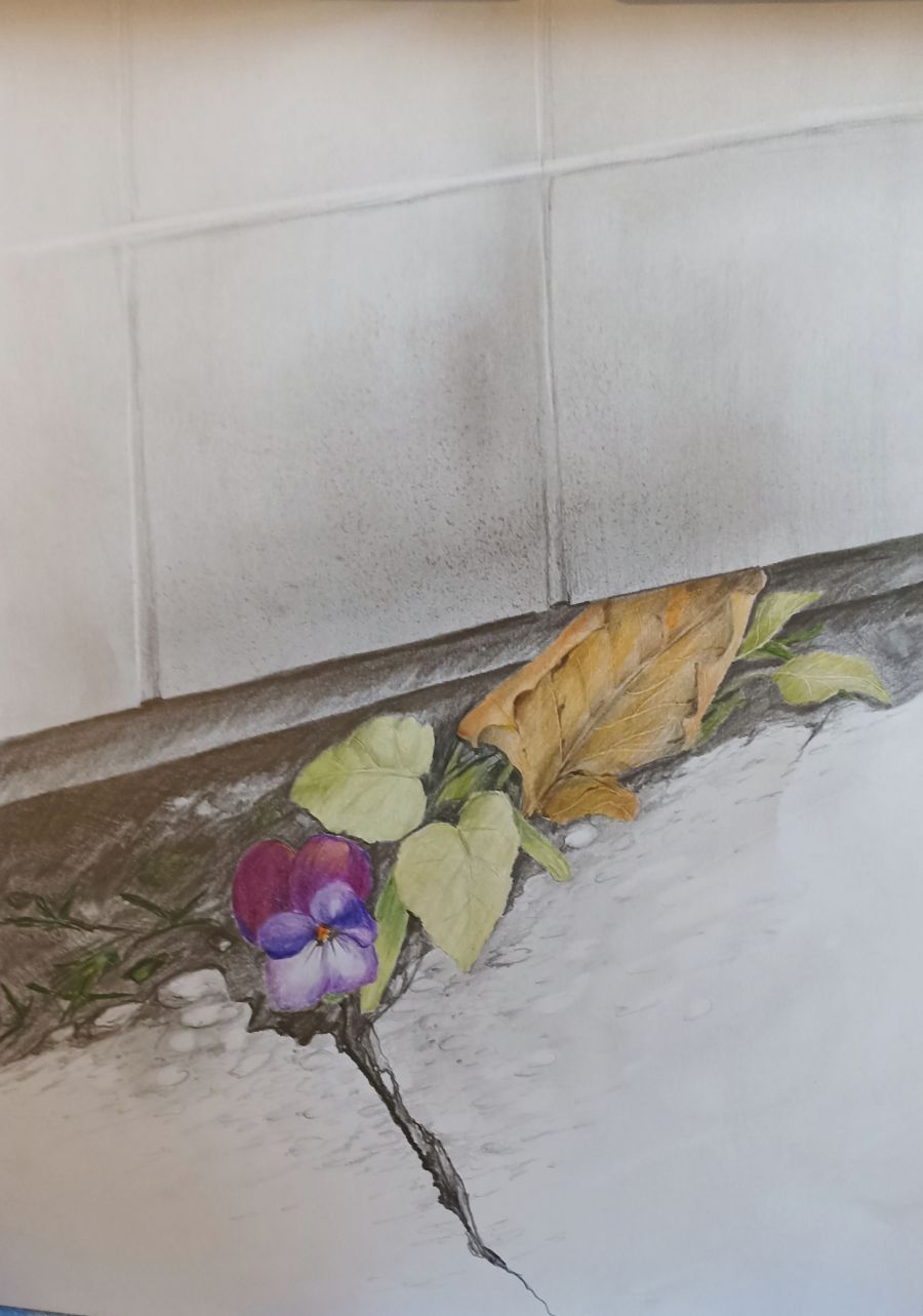 Von der klassischen naturalistischen Zeichnung bis zur freien Interpretation einer Bildidee in kräftigen Acrylfarben sind die gezeigten Exponate. Strukturierte Untergründe, eingearbeitete Collagen und Materialmix ergänzen die Bandbreite der eingesetzten Malmittel. Bei der Motivwahl stehen Landschaften, Tierdarstellungen oder Pflanzenstillleben im Mittelpunkt. Da ist das kleine Stiefmütterchen, welches sich mit aller Kraft durch eine Steinplatte zwängt, oder ein durch eine Drucktechnik entstandenes Meerestier.